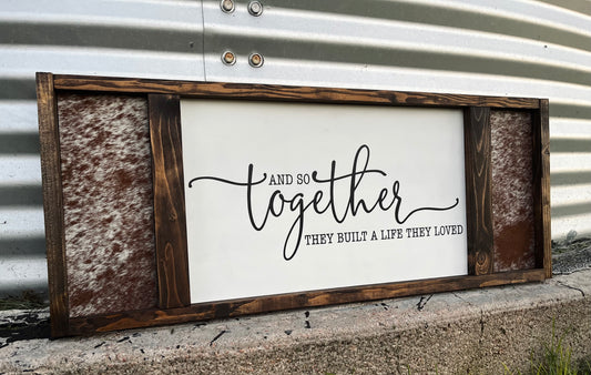 And so together they built a life they loved • genuine cowhide sign
